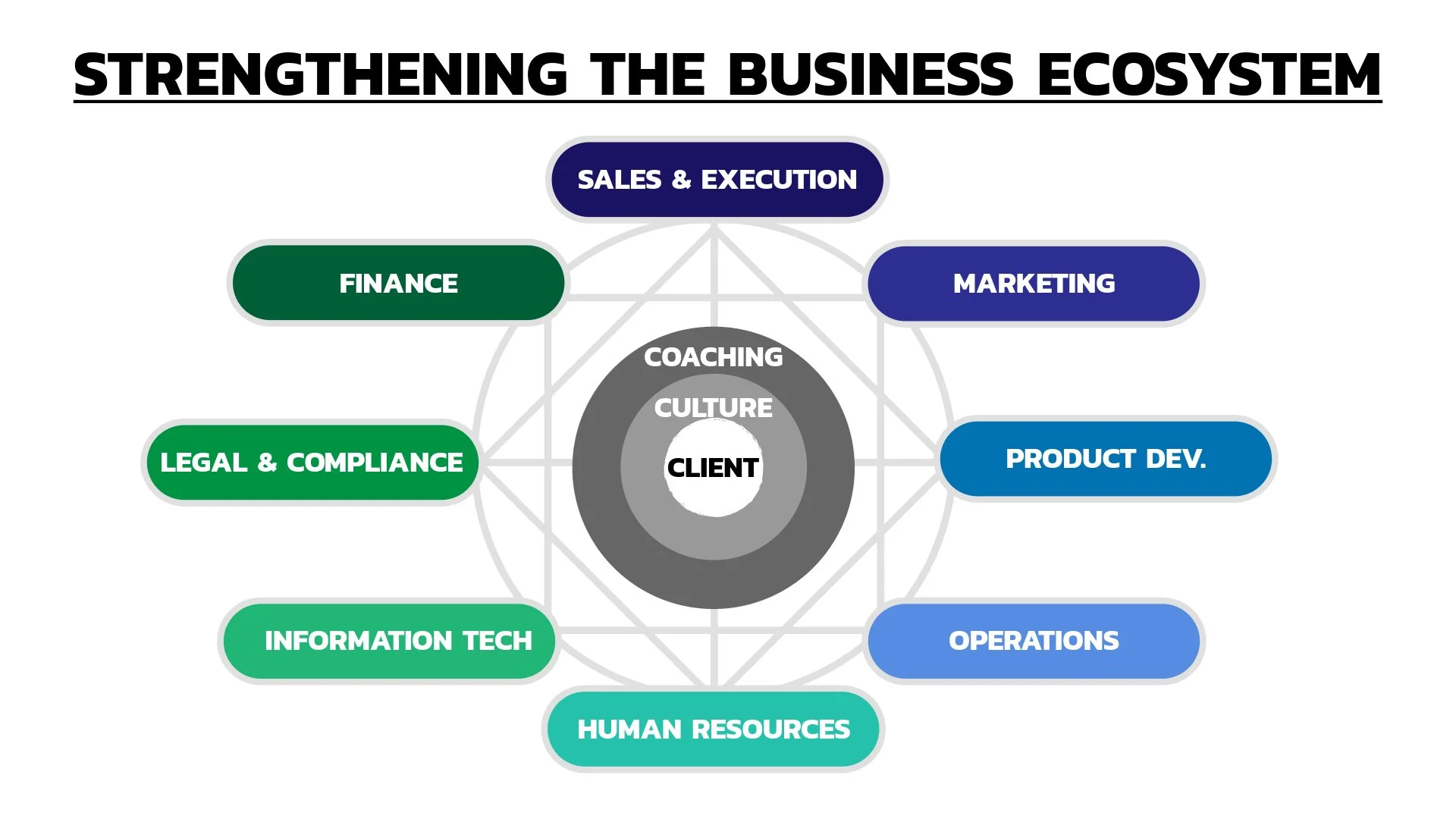 For example, I seek networking partners focused on B2B small and mid-sized businesses whose relationships are in the C-suite. Those specialized in any of the core areas shown on my Business Ecosystem illustration tend to nicely complement my Fractional Sales Leadership focus that centers in the “Sales & Execute” area of the business.